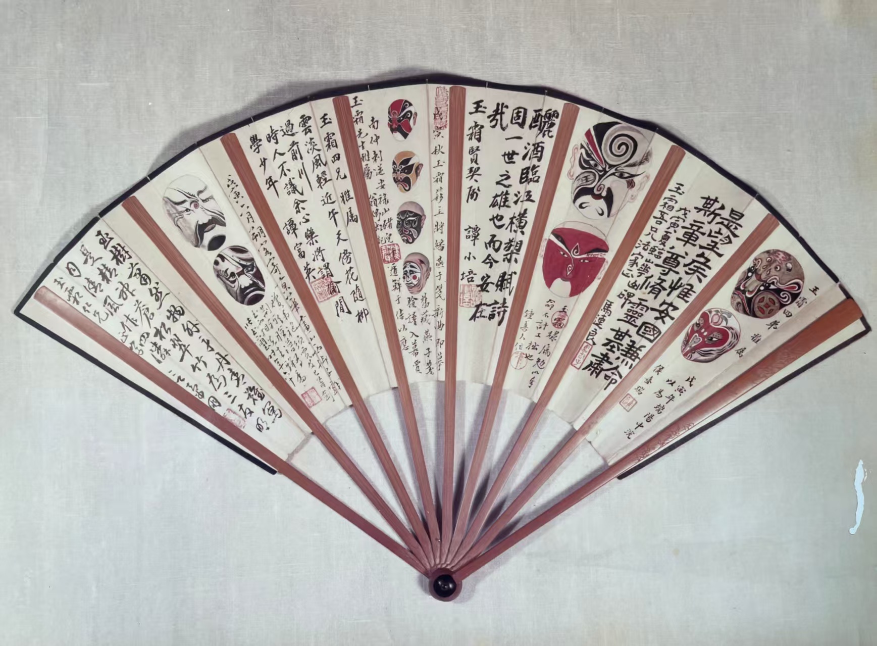 翁偶虹回赠程砚秋戏曲人物脸谱扇