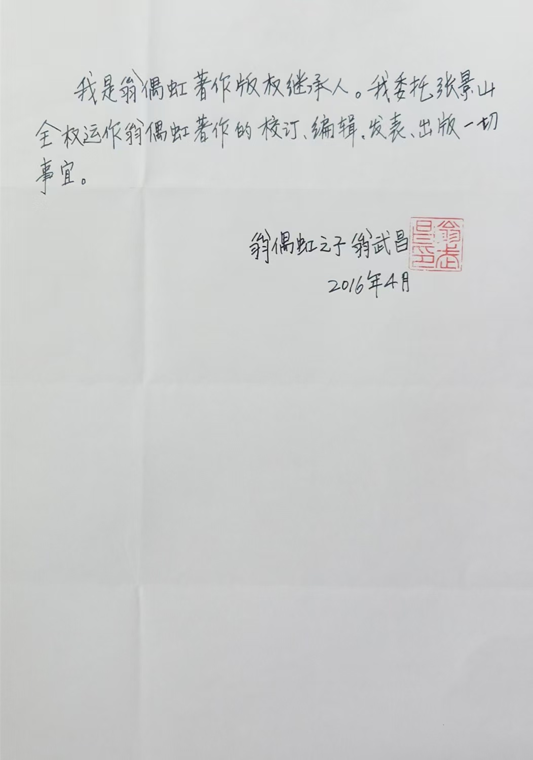 “我是从1981年起开始跟着翁偶虹先生学习,是他的入室弟子,陪伴他直到去世。”张景山是戏曲评论家,他是翁偶虹诸多弟子中年龄最小的,也是最贴身的弟子,关系十分亲厚,“翁先生去世前不久跟我说,景山你跟我的时间长,并且对我很熟,我有一些手稿著作,希望托付给你。”翁偶虹的孩子不是戏曲这一行的,所以在翁偶虹去世后,其后人翁武昌写了委托书给张景山,委托他担任翁偶虹著作版权执行人。现在这么多年过去,翁偶虹最小的孩子都八十来岁了,张景山也将近七十岁了。