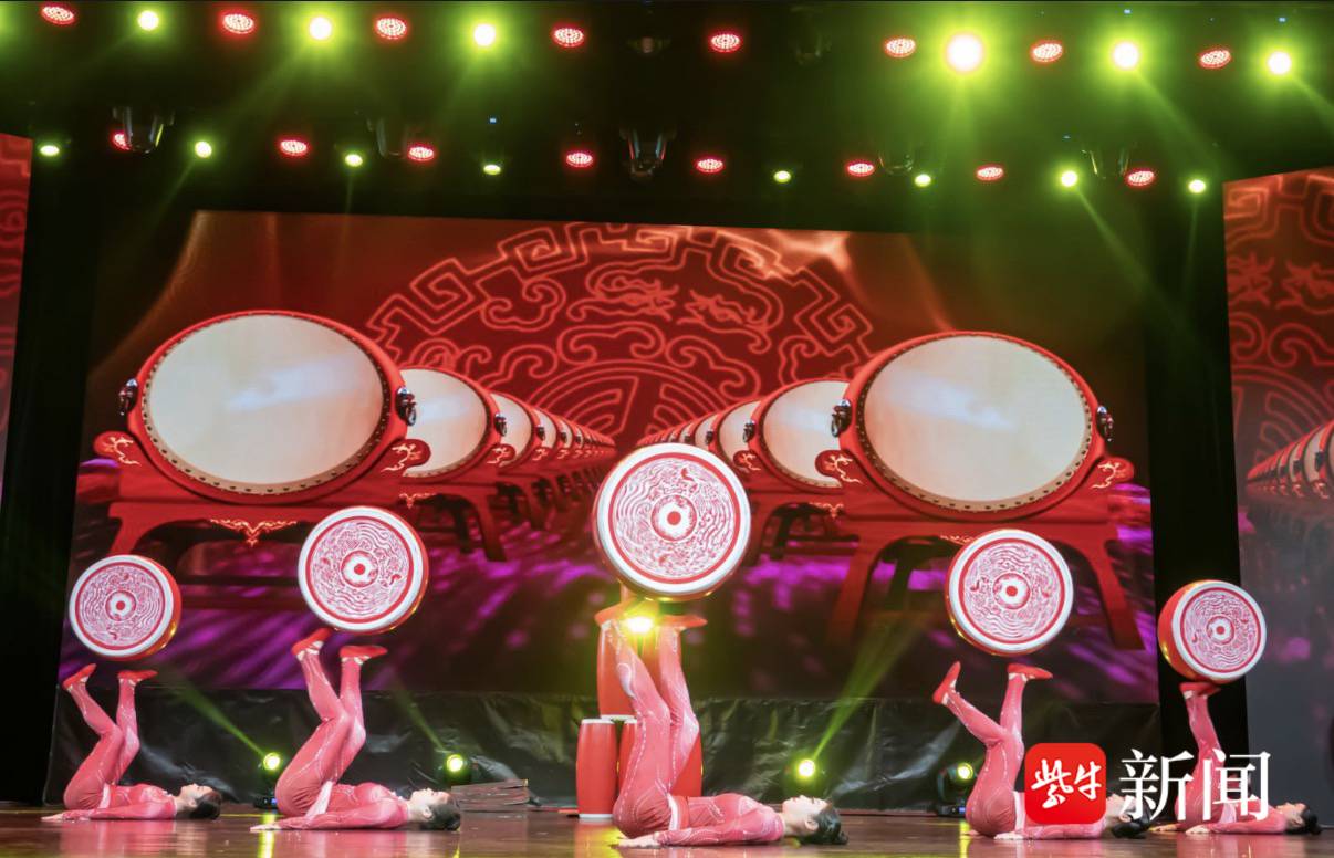“艺·霓裳回雪” 以视觉盛宴压轴。群舞《美人图》舞姿曼妙,演员似从古画中款款走出;南京笑星陈峰宁单口相声《金陵趣事》用地道南京话抖开街巷笑料,“阿要辣油啊”等俚语引发阵阵爆笑。省杂技团《丫丫戏鼓——蹬鼓》将力量与柔美熔于一炉,高难度蹬鼓动作激起惊呼连连。终场歌舞《花开新时代》以磅礴气势点亮全场,绚烂灯光映照出人们对美好生活的向往。