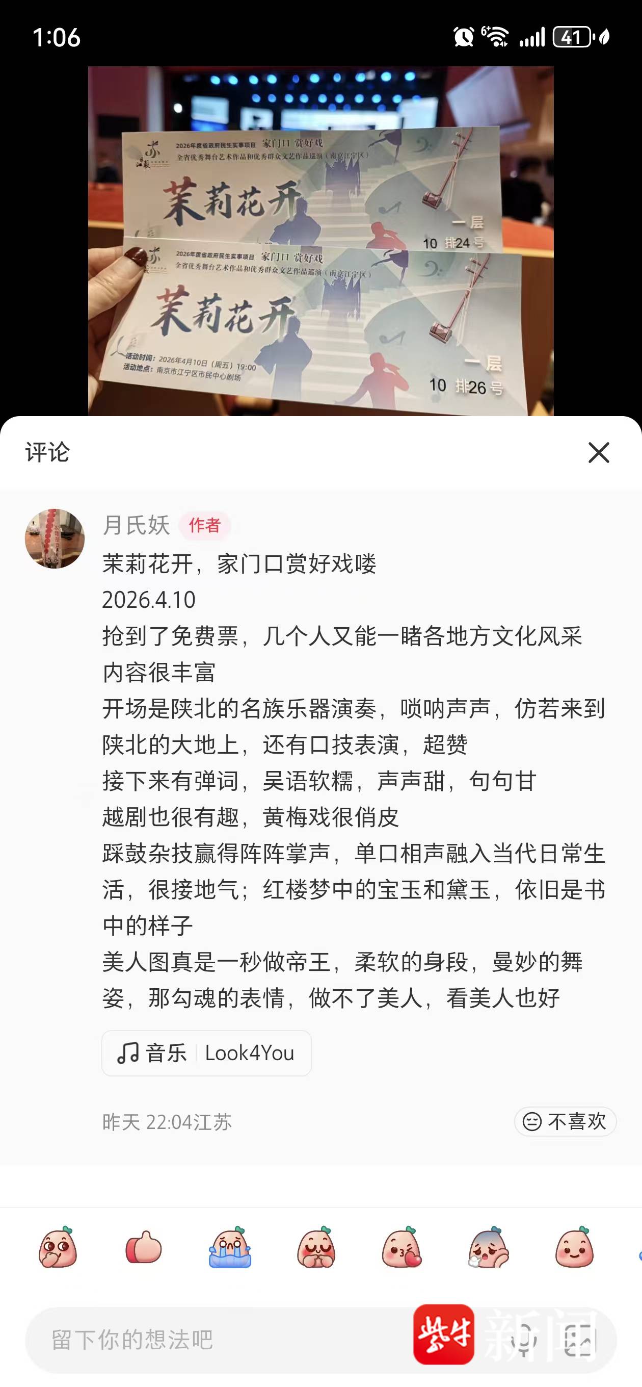 “能在家门口看到这么多专业院团的演出,还有梅花奖得主,太惊喜了!”市民李先生兴奋地说,“《这就是南京》听得人心里暖洋洋的,江宁的文化生活真是越来越丰富了!”线上直播间同样反响热烈,“羡慕江宁!”“希望多办几场!”的留言不断刷屏。