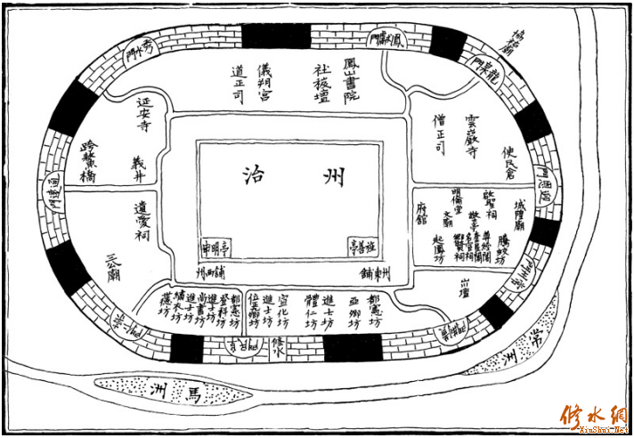《宁州志》地图上,城东南沙洲被命名为“常洲”,东南角城门被命名为“常洲门”