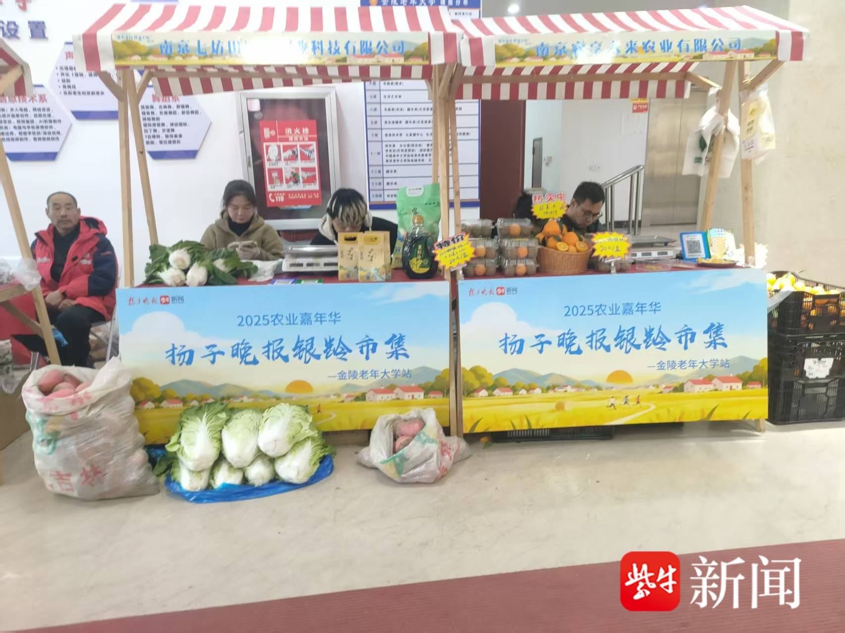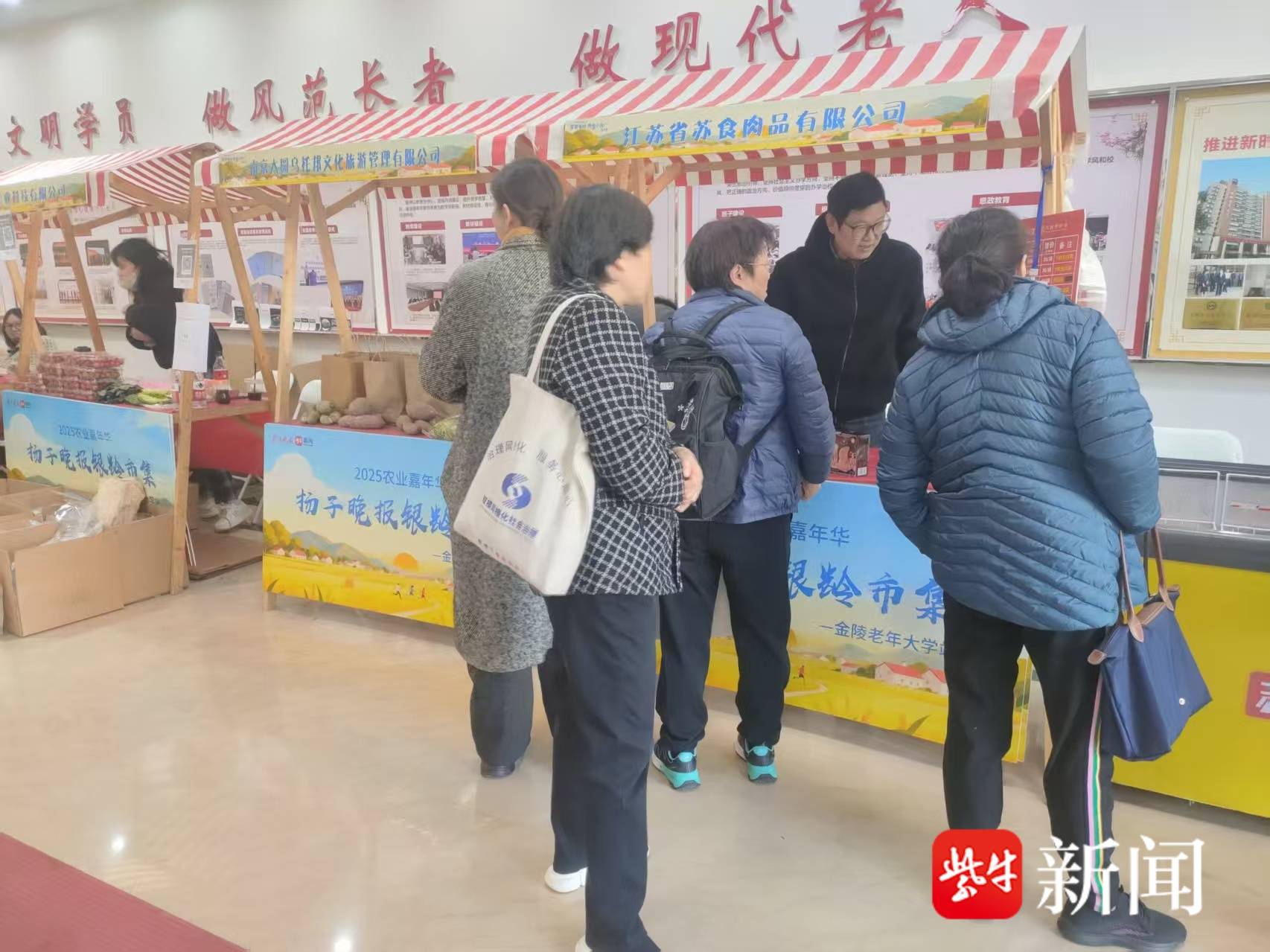 活动现场,除了干货满满的项目推介,一场热闹的“南京优质农产品市集”格外吸睛。市集由南京市农业农村局联合扬子晚报精心策划,汇聚了特色农产品——从酸甜不涩的黑莓汁到桥林的手工茶干,从农场现摘的青菜玉米到散发清香的猕猴桃,琳琅满目的“乡味”引得金陵老年大学的学员们驻足品尝、选购。“平时只能在超市买包装好的农产品,今天能直接和农户聊天,知道这菜是怎么种的,买得更放心!”学员王女士说。