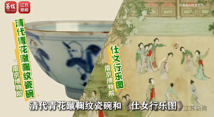 而在南京博物院,还收藏了清代青花蹴鞠纹瓷碗和《仕女行乐图》,可见在古代江苏,足球早已突破年龄和性别界限,成为全民娱乐。