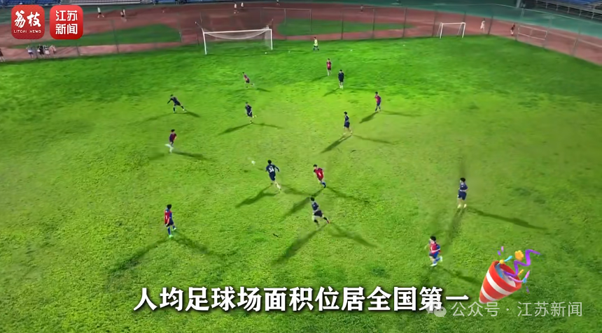 目前,江苏共有11632个足球场地,人均足球场面积位居全国第一;今年的省政府工作报告中两次提及足球,这些都为“苏超”等赛事蓬勃发展注入强劲动力。