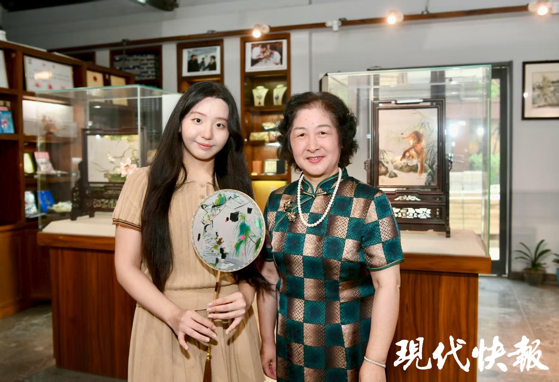 在赵红育精微绣工作室,国家级非遗代表性传承人赵红育展示了精微绣的极致技艺——以针为笔、以线为墨,在方寸之间绣出层次丰富、栩栩如生的画面。曾登上总台春晚的代表作品双面绣团扇,成为外媒镜头下的焦点。
