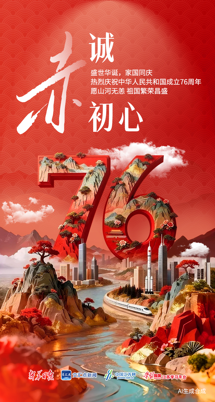 当中国红漫卷神州,撷九色点亮山河。今天,中华人民共和国迎来了76周年华诞。14亿多中华儿女以赤诚为笔、以色彩为墨,在960万平方公里的土地上,共同绘就家国同庆的壮丽画卷。在这个特殊的日子,让我们一起祝伟大的祖国繁荣富强!