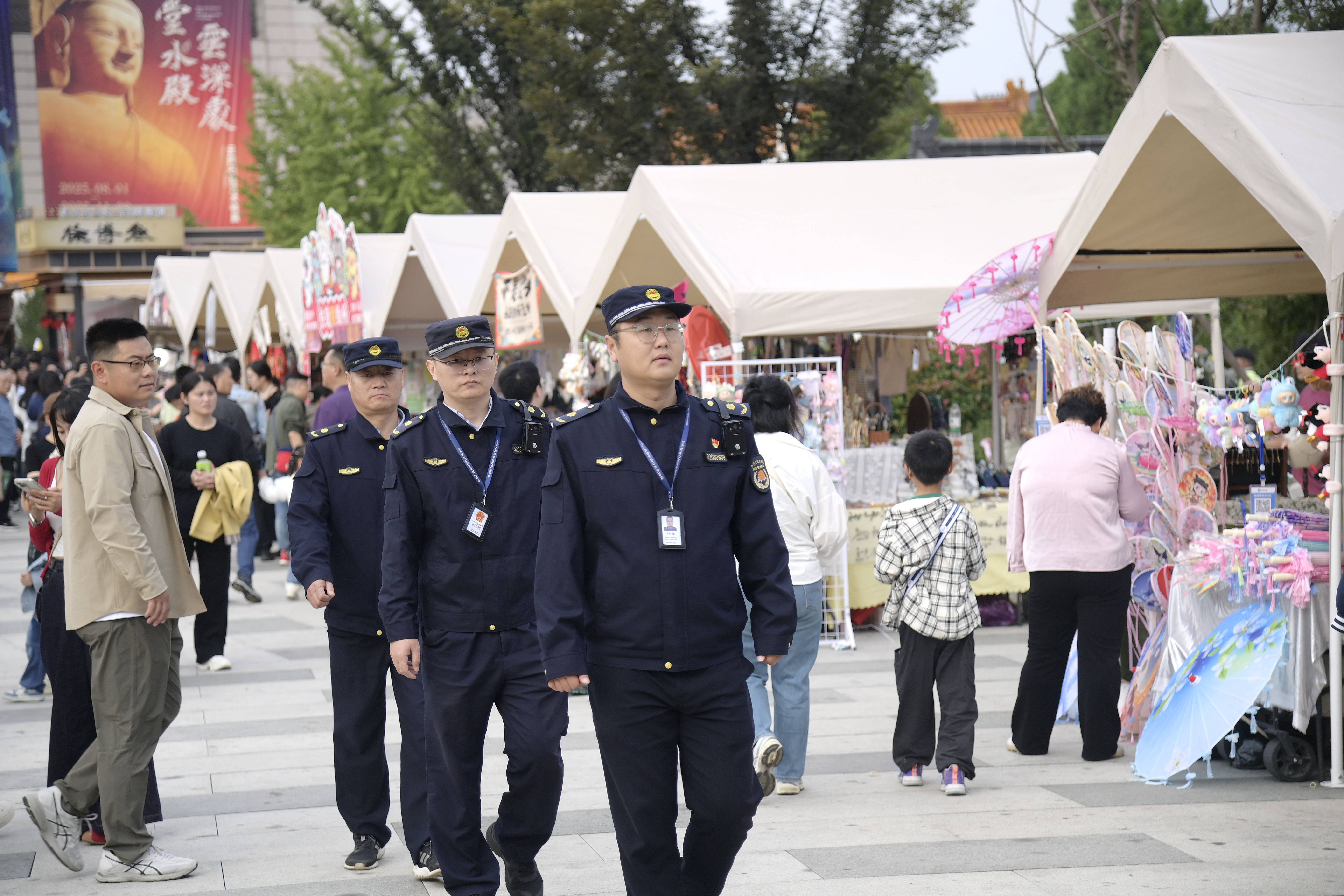 为了让市民、游客的假期更充实,云龙山北坡“双节”期间设置了市集,近百个摊位有序排布。“我们9:00到场,20:30撤岗,秩序不松游客才能玩得尽兴。”李贺的一句话,道尽假期保障的节奏。