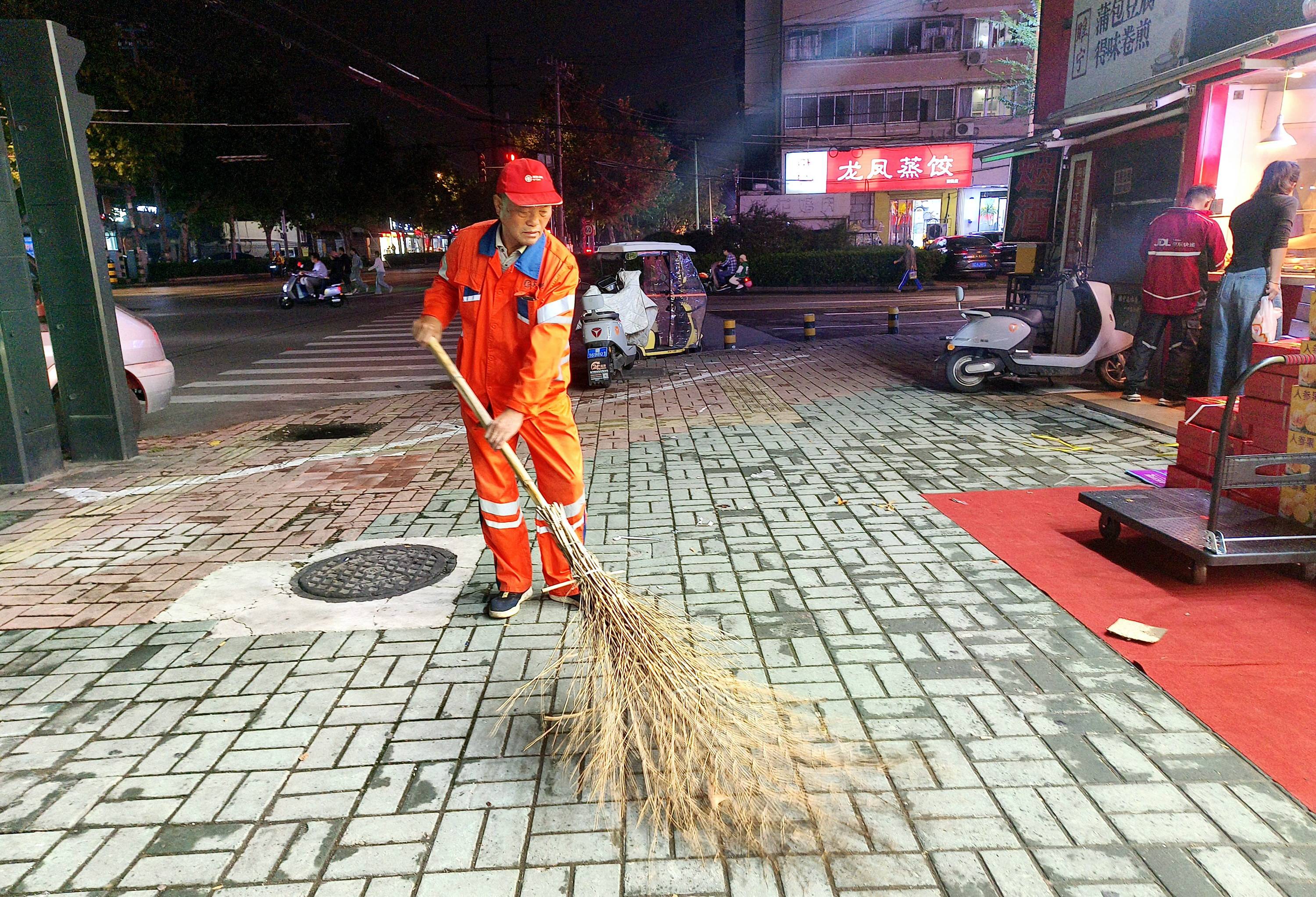10月3日20:00,黄河南路灯火通明。徐州苏彭市容环境服务有限公司保洁员孙玉强,正挥舞着大扫帚,落叶、纸屑被迅速归堆。“途经这段路的外地游客多,路段距离富国街、黄河新村比较近,道路内小吃店铺众多,你看车牌,十辆里有八辆是外地的。”老孙抹把汗,笑得憨厚。