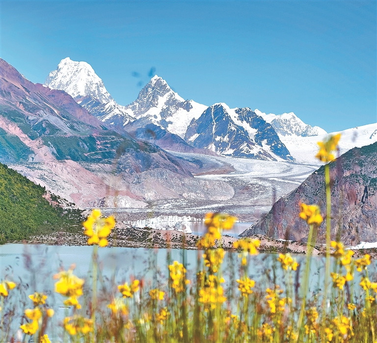 近年来,西藏以创建国家生态文明高地为引领,走出了一条生态优先、绿色发展的新路。坚持生态优先、保护第一,严格执行青藏高原生态保护法,深入实施国家生态安全屏障保护和建设规划,把全区50%以上的国土纳入生态保护红线;统筹山水林田湖草沙一体化保护和系统治理,国土绿化行动深入推进,特别是近几年来,实施了南北山绿化工程,造林超过100万亩,全区森林覆盖率提高到12.31%;共设立生态岗位44万余个,年发放补助金超过了15亿元,人民群众在生态建设中吃上了生态饭、走上了致富路。 昌都市八宿县来古冰川。记者 丹增群培 摄