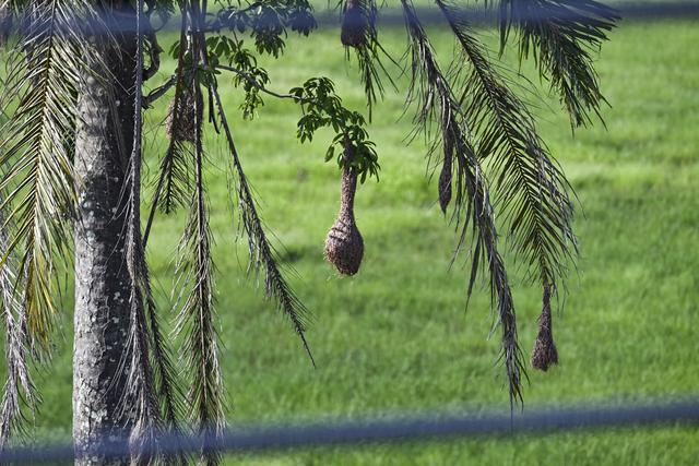 ↑10月10日,在马来西亚彭亨州,马东铁项目旁边的树上挂着一个鸟窝。