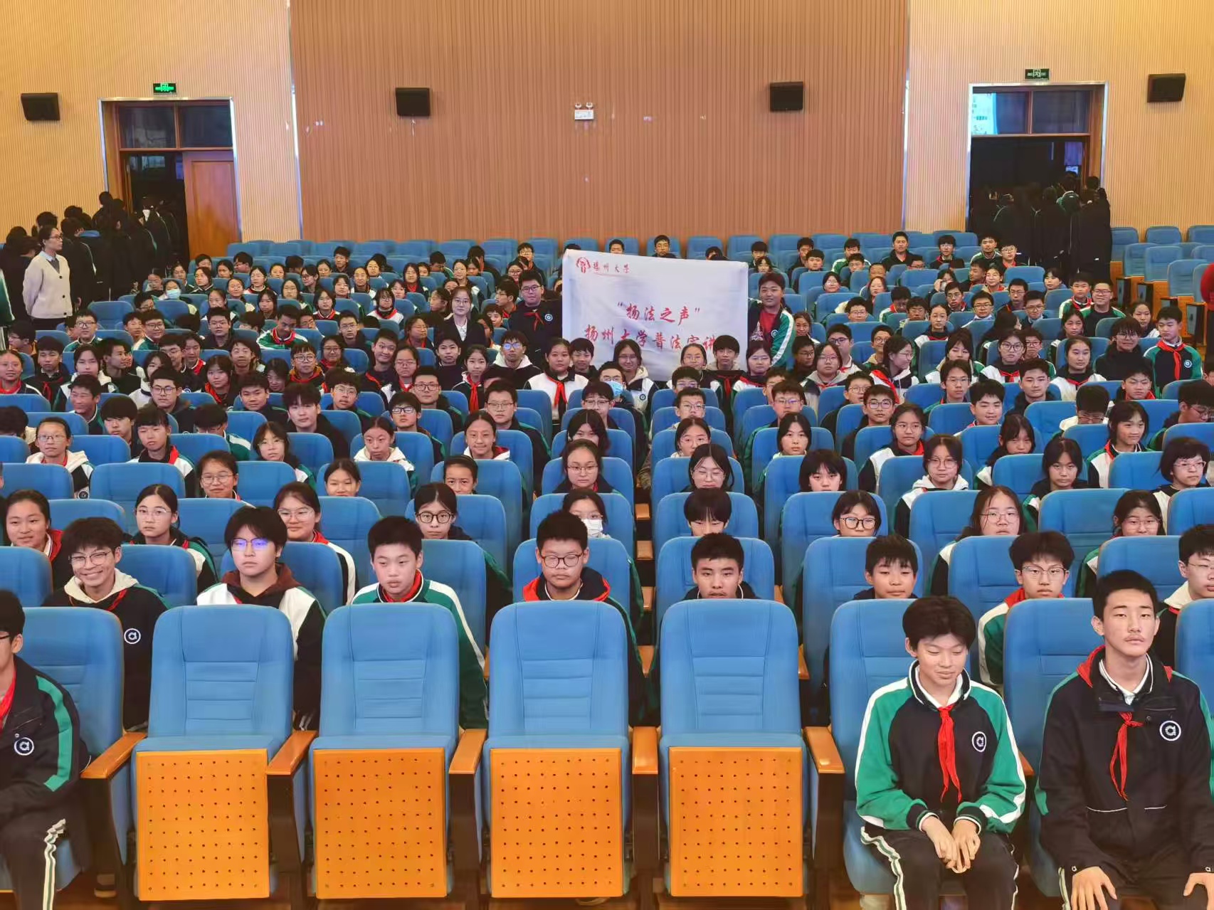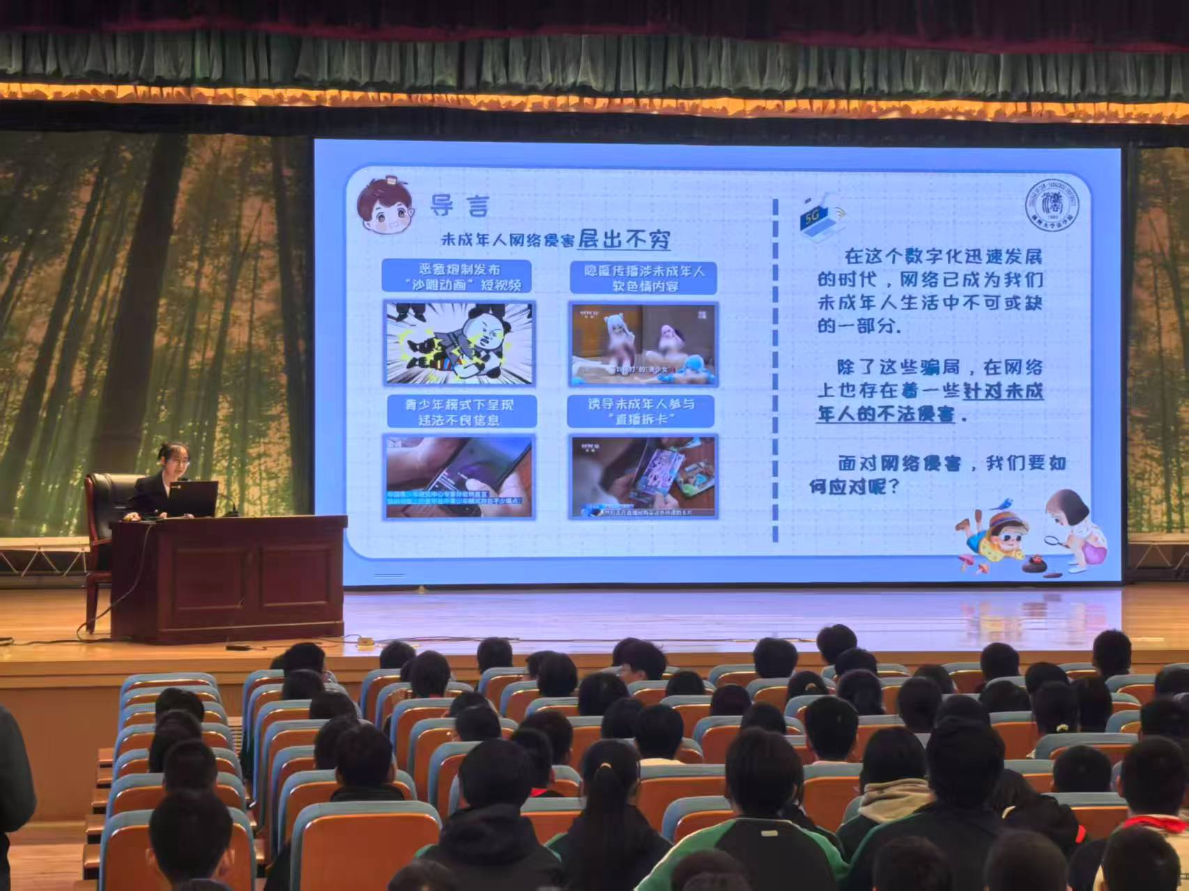 交汇点讯 “同学们,你们有没有过自己的照片被朋友恶搞做成表情包发到网上的经历?要注意啦!恶意p图可能会伤害他人的自尊心,严重的话甚至会侵犯他人的名誉权和肖像权!”11月7日下午四点半,扬州市竹西中学的报告厅里,700余名初二年级学生整齐端坐,目光投向讲台,随着扬州大学法学院普法宣讲团志愿者陈欣的话音落下,一堂别开生面的未成年人网络保护课正式开讲。