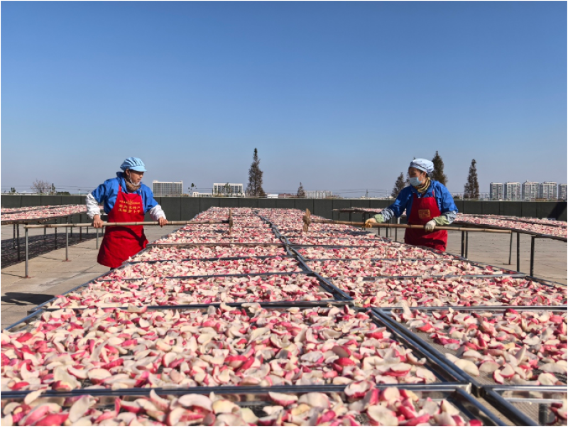 在新闸街道凌家村,一块块“边角地”种出了萝卜干产业的“大文章”。村党总支书记刘根东告诉记者,村委牵头整理了村中的“沉睡资源”,共盘活近百亩零星用地,专门提供给农户种植红萝卜。这些土地不仅让村集体每年增收四五万元,更让村民实现了“家门口就业”。目前,仅凌家村自产萝卜加工成的萝卜干就近1.5万公斤,产业集群初具规模。而作为常州萝卜干行业的领军者,五代传承的“玉蝶”品牌,手握江苏省非物质文化遗产与江苏老字号双重荣誉,则走出了“传统与现代共生”的产业化道路。