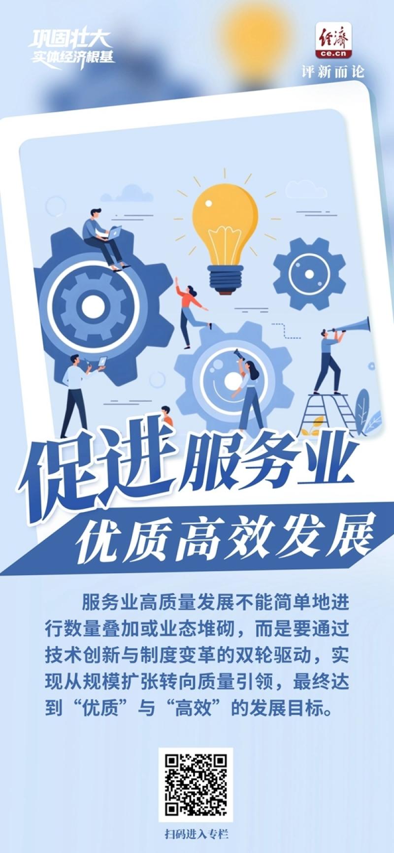 促进服务业优质高效发展,是筑牢现代化产业体系“四梁八柱”的关键一环,也是不断塑造发展新优势、满足人民新期待的重要过程。方向既定,实干为要,紧扣“优质”和“高效”,持续锻造强大的“服务引擎”,现代化产业体系基础将更加坚实,中国经济高质量发展的动能也将更加强劲。(中国经济网评论员 臧梦雅)