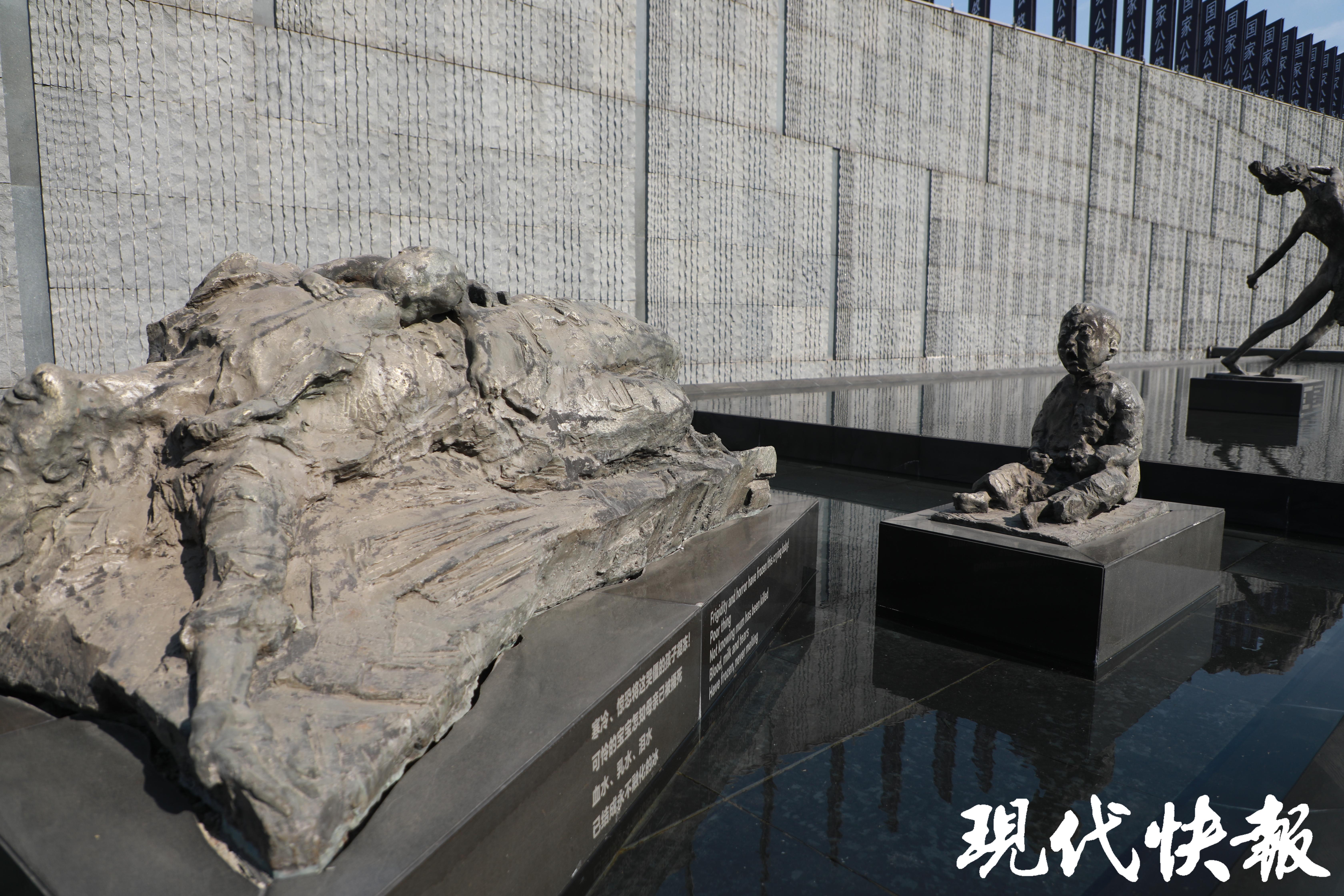 在纪念馆广场上,有一组雕塑,婴儿趴在遇难母亲的身上吸吮最后一滴奶水,距离母亲两米外的地方,另一个年龄稍大的男孩坐在地上号啕大哭……这组雕像,正是以南京大屠杀幸存者常志强的母亲、弟弟为原型,坐在一边哭泣的小男孩就是当年才九岁的常志强。