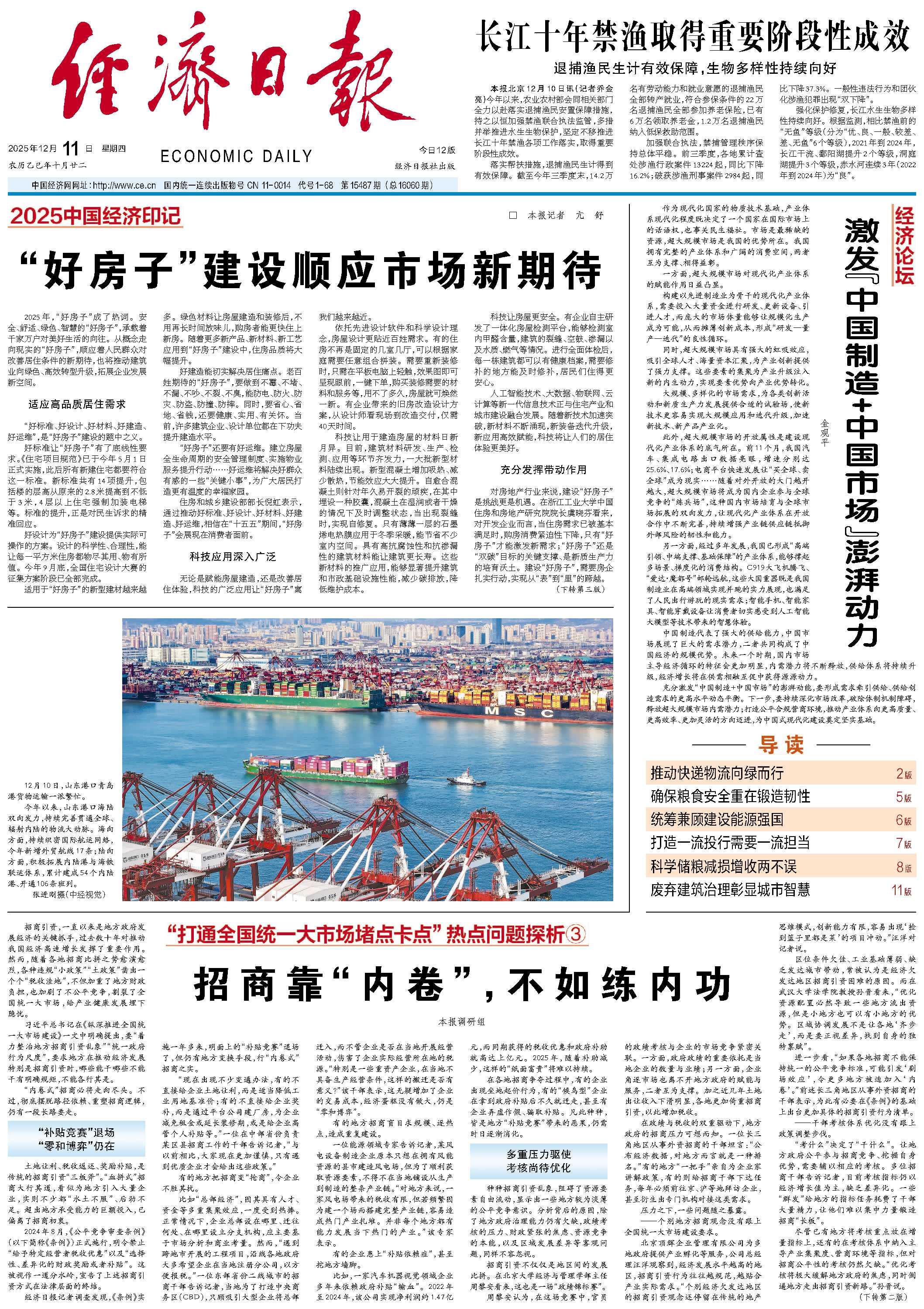 此外,超大规模市场的开放属性是建设现代化产业体系的底气所在。前11个月,我国汽车、集成电路出口数据亮眼,增速分别达25.6%、17.6%;电商平台快速发展让“买全球、卖全球”成为现实……随着对外开放的大门越开越大,超大规模市场将成为国内企业参与全球竞争的“练兵场”,这种国内市场培育与全球市场拓展的双向发力,让现代化产业体系在开放合作中不断完善,持续增强产业链供应链抵御外部风险的韧性和能力。
