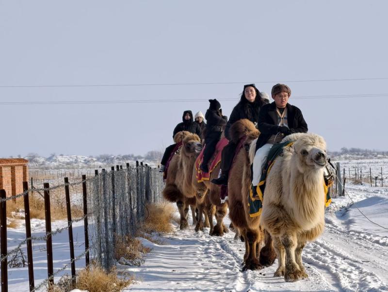 蜿蜒驼队深入雪原