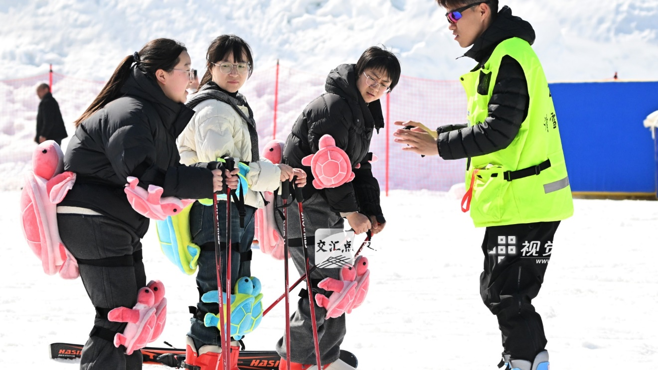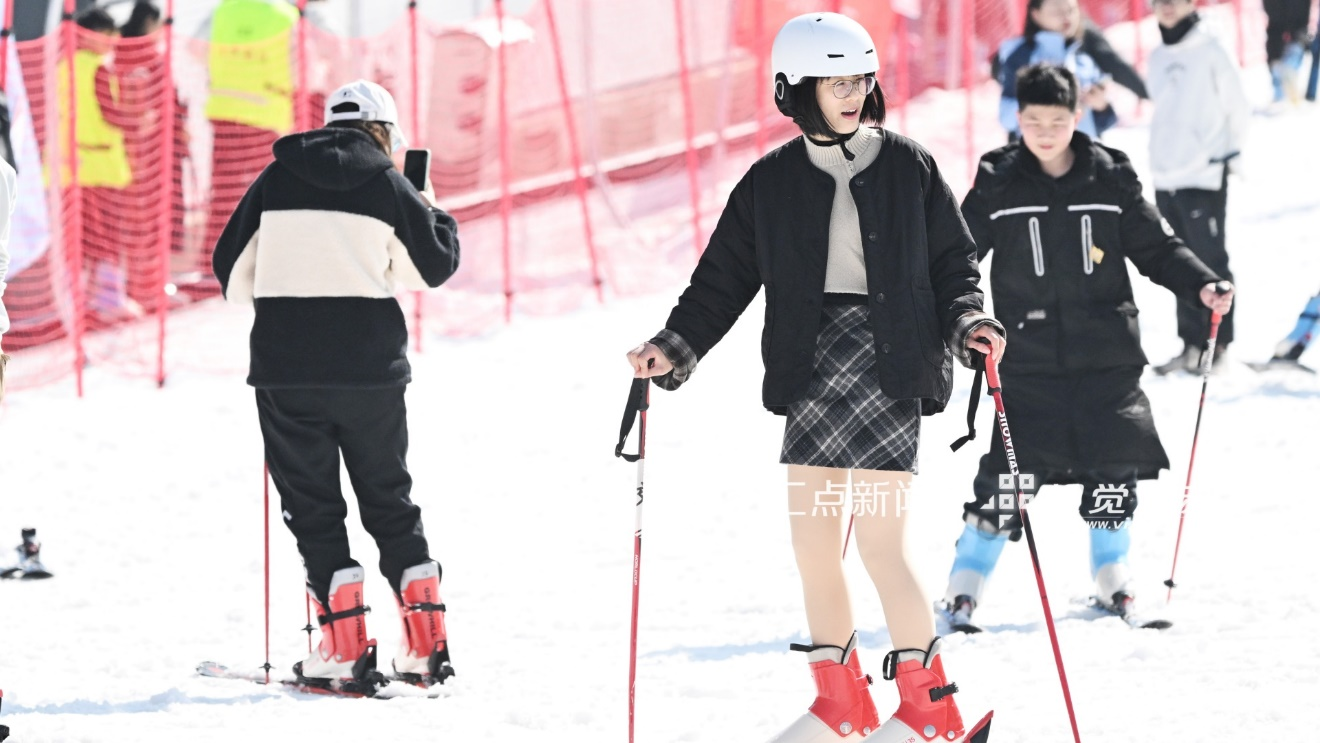 下午2点,户外气温超过20℃,太阳下温度达到28℃。滑雪场迎来客流高峰,场内满是欢声笑语。张皓鸣“生意兴隆”,忙得午饭也没顾得上吃,脸颊上全是汗珠。看着小伙子们穿着短袖、姑娘们穿着短裙兴致盎然地滑雪,他边擦汗边感慨,这真是东北不可能看到的场景,这对“初体验”的滑雪者非常友好。