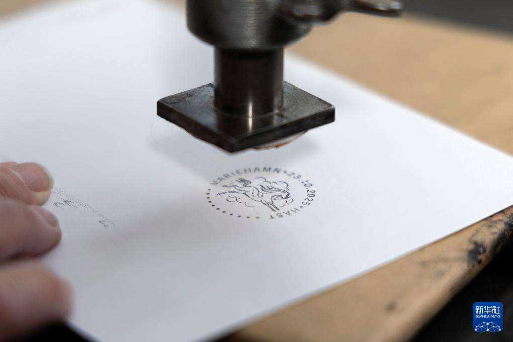 1月21日,在位于芬兰奥兰群岛自治区首府玛丽港市的奥兰群岛邮政署总部,工作人员为一张明信片盖上马年生肖主题印章。新华社发(马蒂·马蒂凯宁摄)