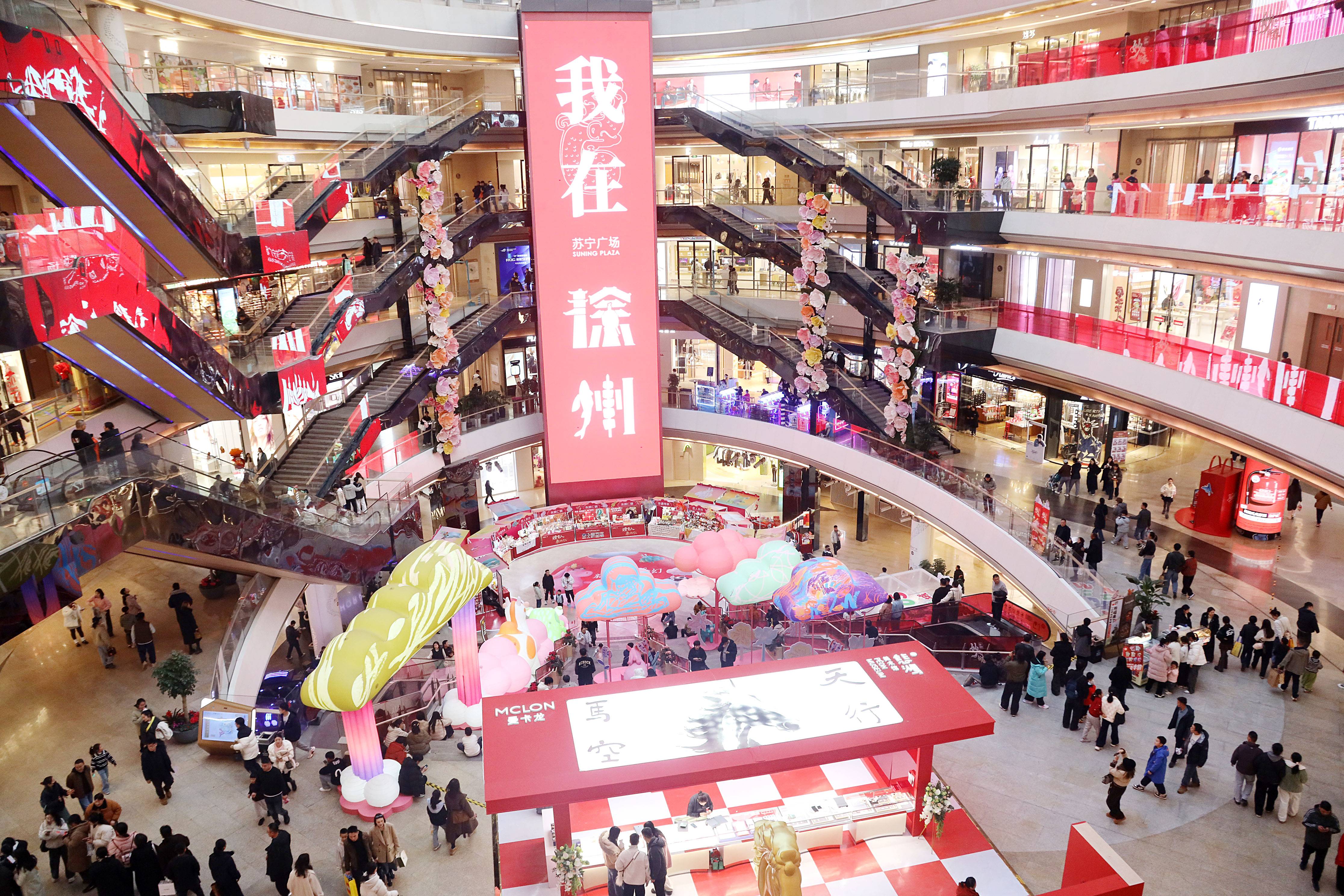 各大商圈成为促销活动的主阵地。金鹰国际、徐州苏宁广场、杉杉奥特莱斯、环球港等徐州各大商贸企业,紧扣消费热点,纷纷推出年货大集、新春折扣、满额赠礼、抽奖互动、会员专享等优惠活动,线上线下同频共振,营造浓厚节日消费氛围。