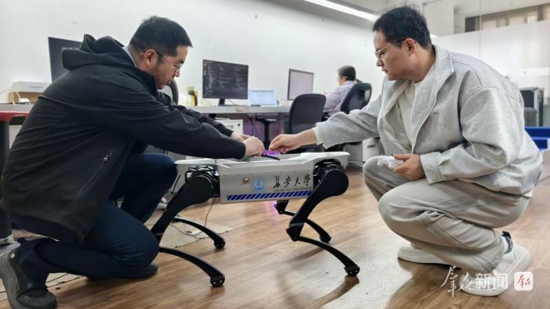 3月2日,西安云合智能机器人有限公司里,技术人员在优化调试防爆四足巡检机器人。这家由长安大学科研团队创办的企业,正在准备新款产品的发布。