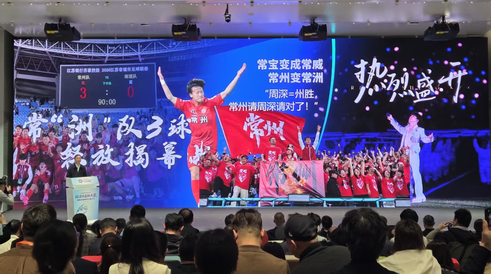 “昨晚常州队以3:0获胜,‘常宝变常威,常州成常洲’!”当周伟激情分享昨晚苏超揭幕战盛况,现场响起了会心的笑声和掌声。昨天的常州揭幕赛,预约人数超百万;人们因热爱集结,为城市荣耀呐喊。正如周深为揭幕战倾情献唱的主题曲《热烈盛开》,这份热烈盛开的力量,同样在常州的产业赛道上激情绽放。