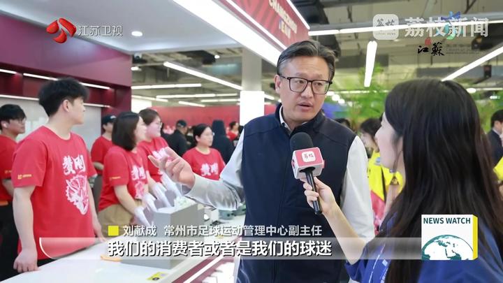 荔枝新闻中心记者毕然说:“这里是常州奥体中心,伴随着2026江苏省城市足球联赛拉开大幕,我身后的特色文旅市集也热闹开街了。在这里,您既可以近距离感受足球赛事的热血氛围,也可以品尝到各地美食、还能够购买文创好物,让观赛之余多了一份休闲体验。”
