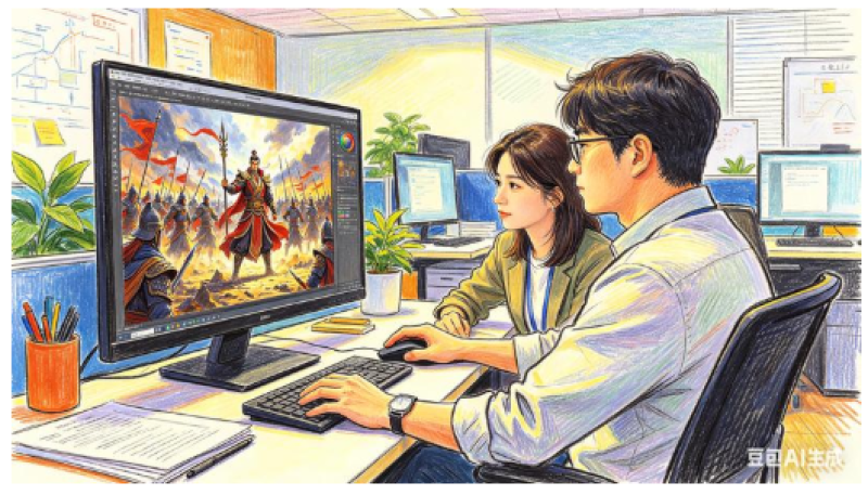 一间办公室,两三人协作,动动鼠标就能“拍”出一部制作精良的大片。这是记者在江都高新区扬州云媒数字产业园看到的漫剧OPC产业发展场景。
