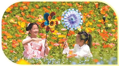 小朋友在江苏省句容市白兔镇伏热花海玩耍,乐享春假。 钟学满摄 |