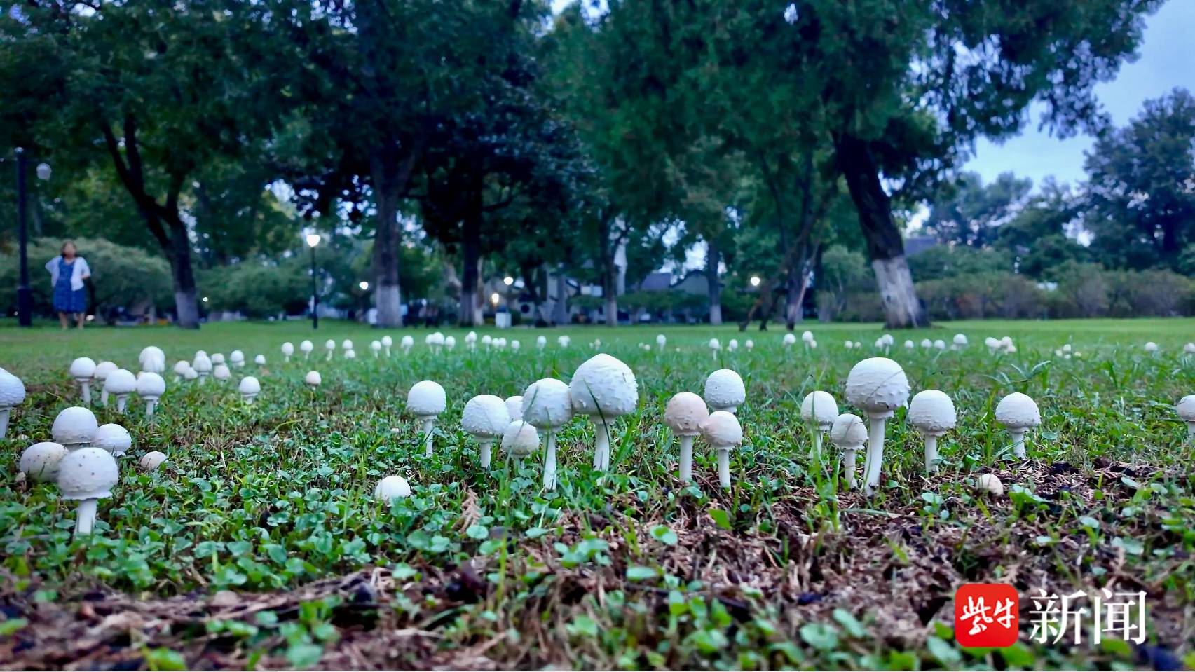 扬子晚报网9月30日讯(记者 王夕悦)近日,玄武湖梁洲草坪上出现了神奇的一幕:自然生长的蘑菇围成了一个圈,仿佛在“蘑菇开会”。这样的蘑菇圈,也被称为“仙女环”。