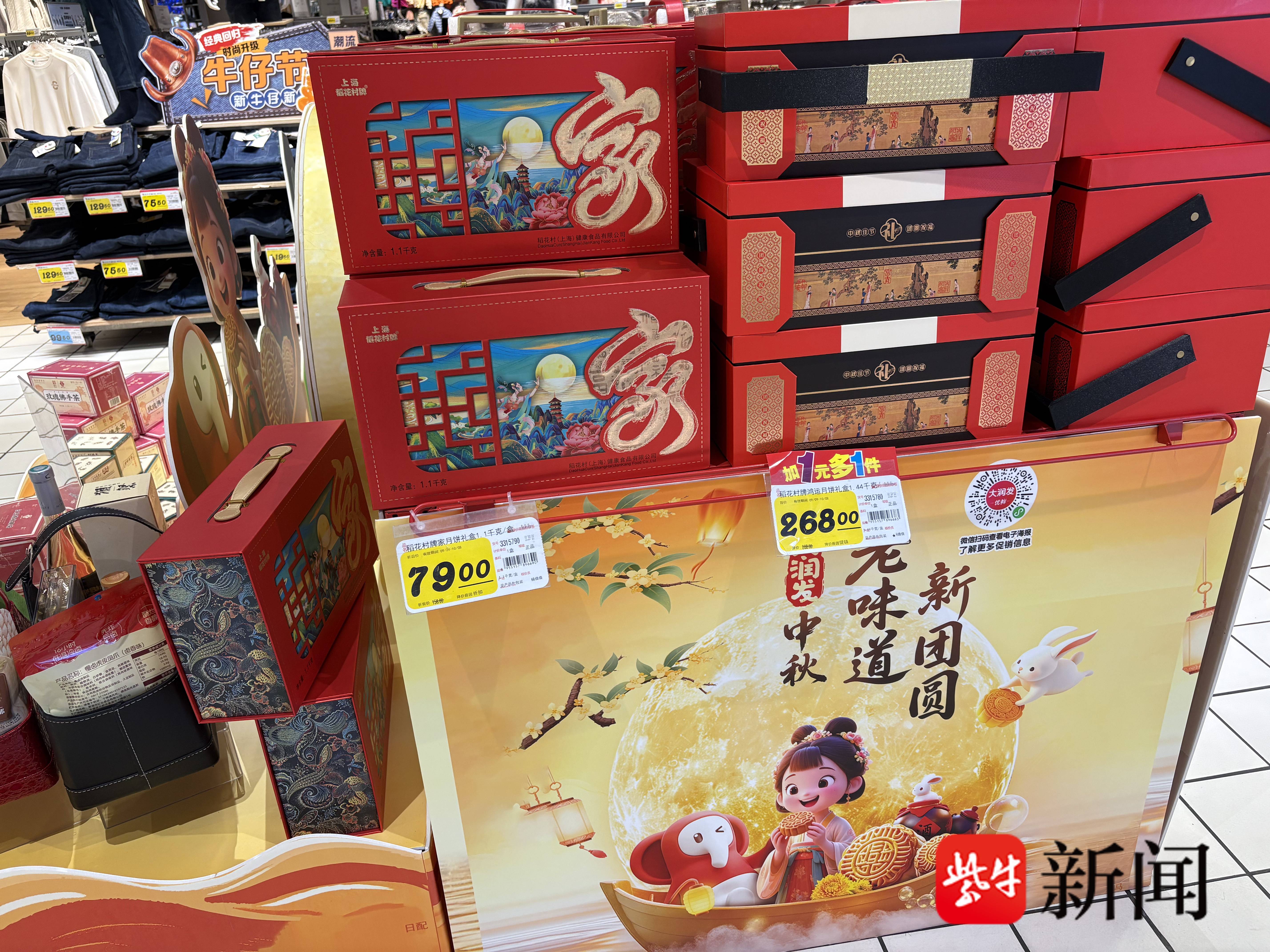 记者在南京龙江一家大型超市探访时发现,较于往年动辄数百元的高端月饼礼盒,今年超市里百元内的平价礼盒占比明显提升。随着中秋的临近,月饼销售也进入“冲刺”阶段,不少月饼礼盒的柜台前已经挂上了促销的招牌。比如一款流心御礼月饼礼盒,原价为298元,现在加1元多一件,299元能抱走两盒。