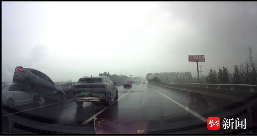 视频|车辆被顶悬空,长深高速淮安段四车相撞