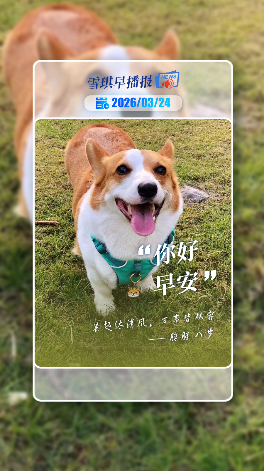 这次登上封面的照片,捕捉到了猪猪最治愈的一面:阳光洒在草地上,她笑得甜甜的,眼神清澈又温柔,仿佛在说:“今天也是美好的一天呀!”主人为这张照片配上了“晨起沐清风,万事皆从容”的寄语,瞬间戳中无数网友的心——原来从容又快乐的“狗生”,就藏在这一个甜美的笑容里。