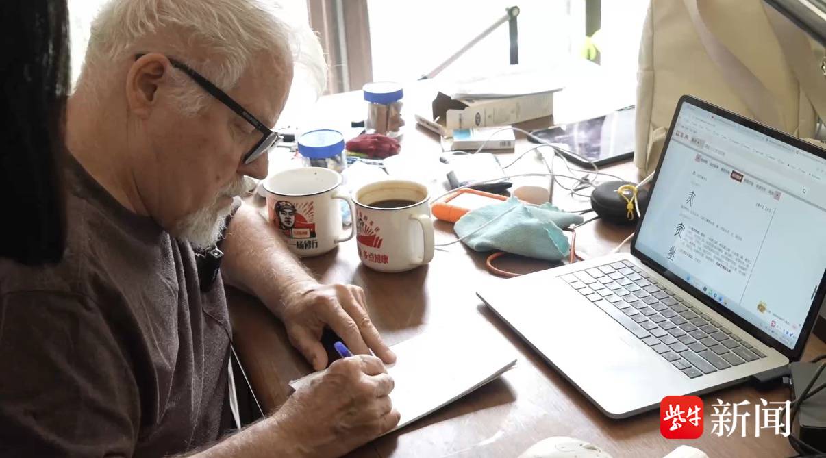 “我一定是没睡醒,居然看到一个外国人在教汉字……”视频里,一位白发苍苍、戴着黑框眼镜,长相酷似“肯德基爷爷”的老人,站在黑板前,一边执笔书写,一边细致讲解汉字的象形起源,格外引人注目。这位老人,就是被中国网友亲切地称作“汉字叔叔”的理查德·西尔斯。从22岁与中文意外结缘,到44岁毅然下定决心搭建汉字字源数据库,再到如今定居中国南京深耕汉字研究,他用数十年的光阴,搭建起一座中外文化交流的桥梁,一点点解锁着汉字背后深藏的千年文明密码。岁月匆匆流转,理查德·西尔斯从众人口中的“汉字叔叔”变成了“汉字爷爷”,但他对汉字的赤诚热爱,却从未有过分毫消减。联合国中文日即将到来,记者来到汉字叔叔位于南京的住所,一起探寻他与汉字奇妙的缘分。