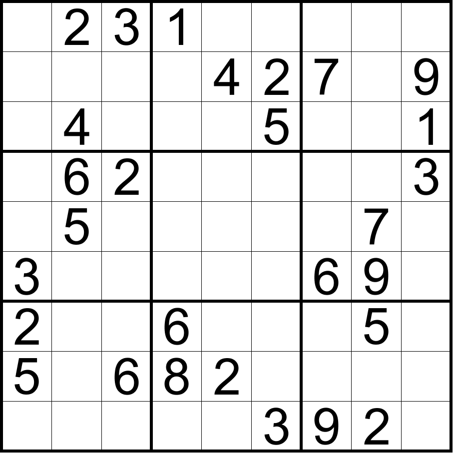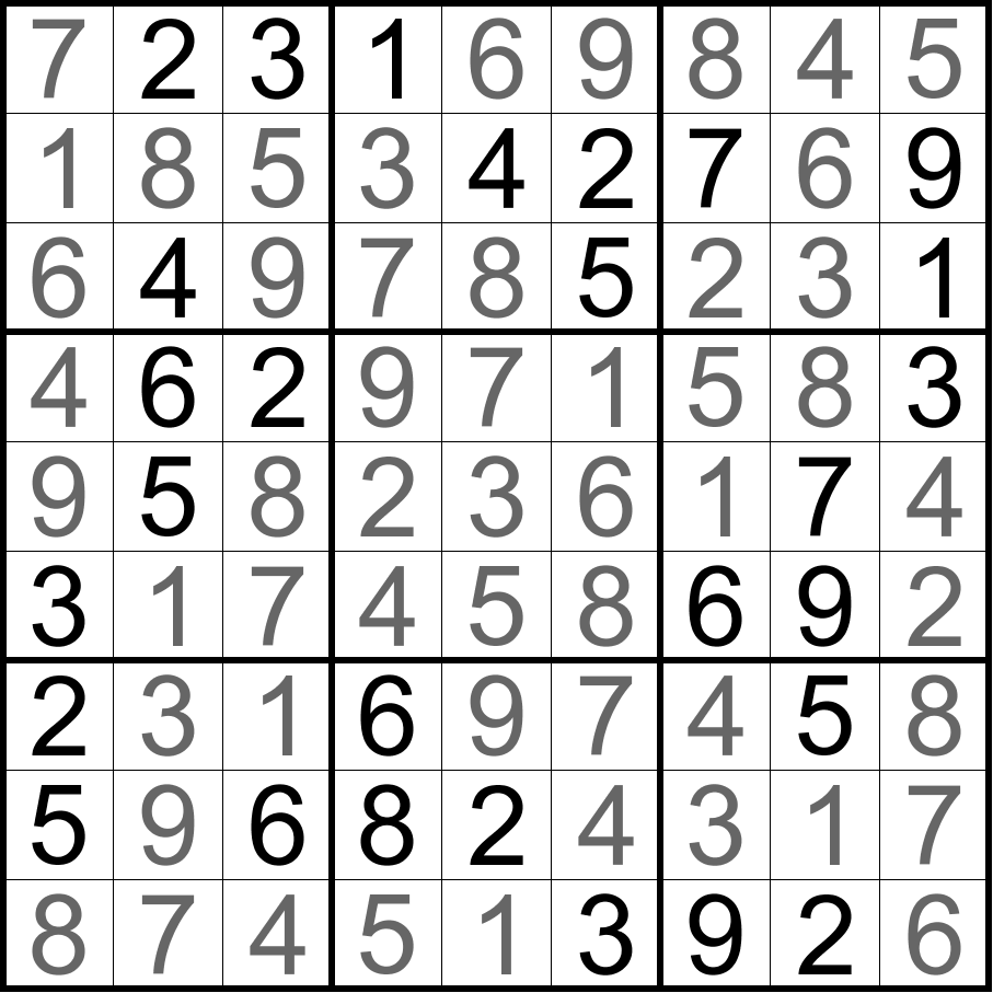 无马数独:将数字1-9填入空格内,使每行、每列和每宫内的数字均不重复。彼此形成国际象棋中马步(二格拐一格)位置的两格内不能填入相同的数字。