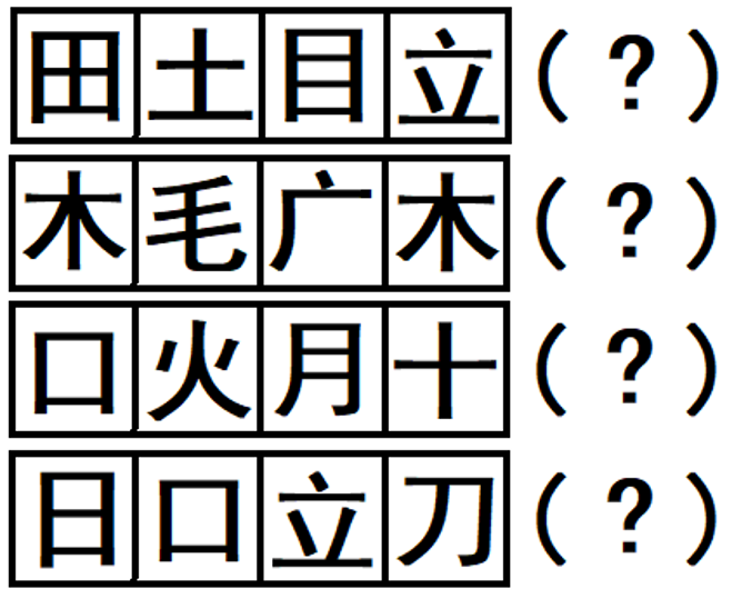 你能将下图中每行的4个字,各拼成一个新字吗?
