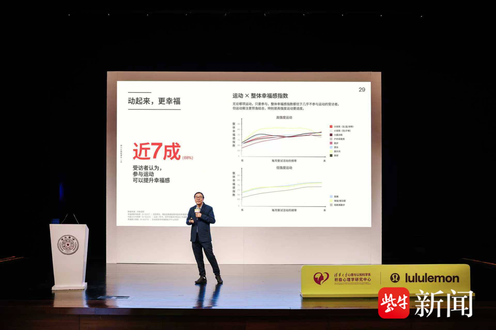 就在同一周早几天的9月23日,北京清华大学的报告发布现场,lululemon中国区董事总经理黄山燕的发言与苏州的景象形成了奇妙的呼应:“一直以来,lululemon的愿景是激发潜能,提升人们的幸福感。这份对幸福感和好状态的共同倡导,把我们与清华的学术研究联结在一起。”