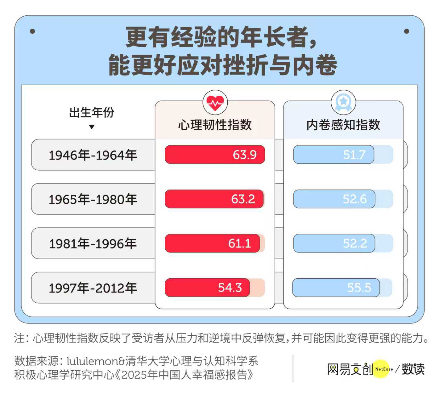 这份由lululemon支持的学术研究,为观察商业空间的演变提供了新的视角。报告指出,Z世代的内卷感知最为强烈,但随着年龄增长,内卷感知减弱,幸福感呈现上升趋势。