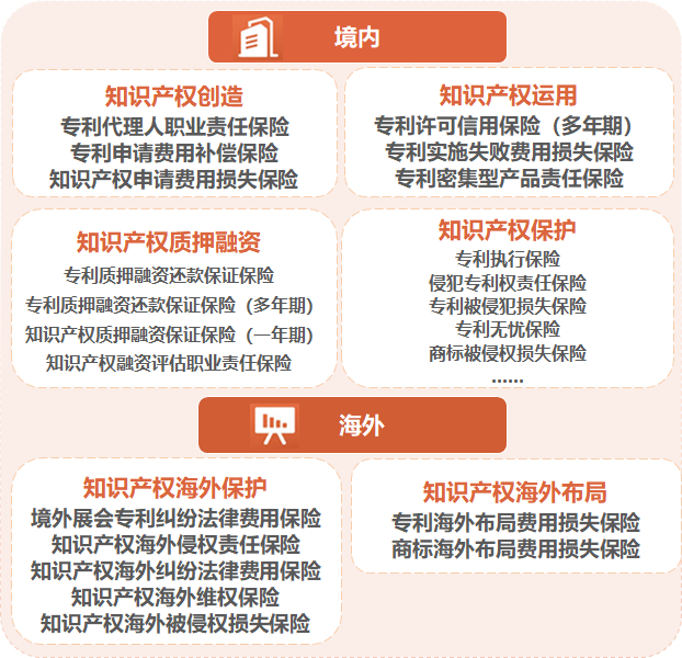 走进江苏人保财险的知识产权保险“产品库”,从研发到转化、从国内到海外的保障场景一应俱全。境内保险覆盖知识产权创造、质押融资、维权保护等全环节,海外保险聚焦海外布局与侵权应对,针对科技企业不同发展阶段提供精准服务。