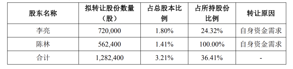 此前一日,趣睡科技发布的股东询价转让计划书显示,因自身资金需求,股东李亮、陈林计划通过询价转让方式转让其持有的128.24万股公司股份,占公司总股本的3.21%,占出让方合计所持股份数量的比例为36.41%。受让方通过询价转让受让的股份,在受让后6个月内不得转让。