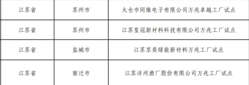 万兆工厂试点项目为:太仓市同维电子有限公司万兆卓越工厂试点、江苏皇冠新材料科技有限公司万兆工厂试点、江苏京奕绿能新材料万兆工厂试点、江苏洋河酒厂股份有限公司万兆工厂试点。