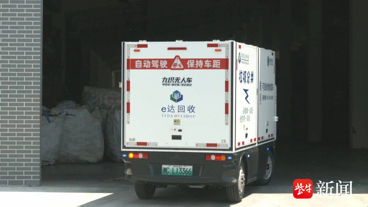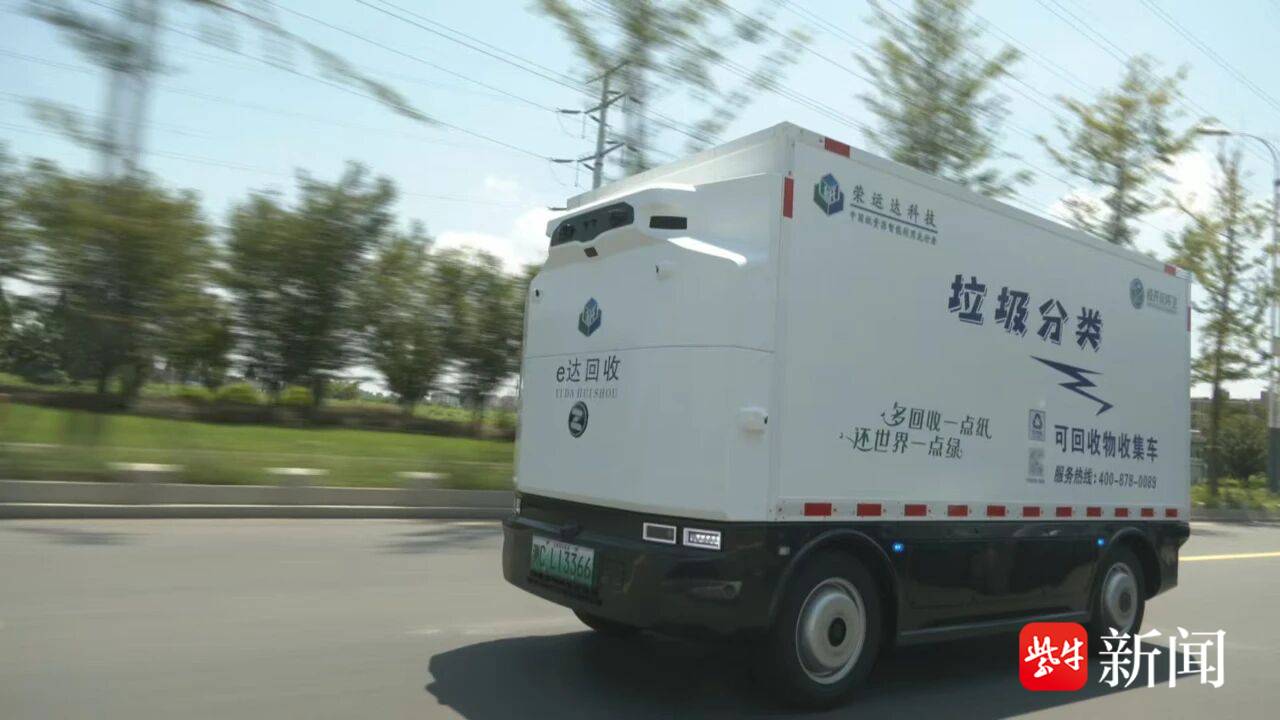在扬州经济开发区扬子新苑小区里,一辆白色的全封闭式小货车驶进了小区垃圾回收房旁,与传统垃圾清运车不一样的是,这辆车没有驾驶员,车身全封闭,没有异味散发出来。当车辆行驶到垃圾房旁边的时候,只需要一个按钮,就可以实现将垃圾房内的纸箱、饮料瓶等可回收垃圾转移到无人回收车内。随后无人回收车自动沿着预设路线驶出小区。在公共道路上,车身上的高清摄像头和传感器不停“扫视”路况,遇到行人时还会减速避让。在抵达目的地后,无人车随即开始卸货,全程除了装货和卸货两个环节需要人工外,其余都自动化完成。