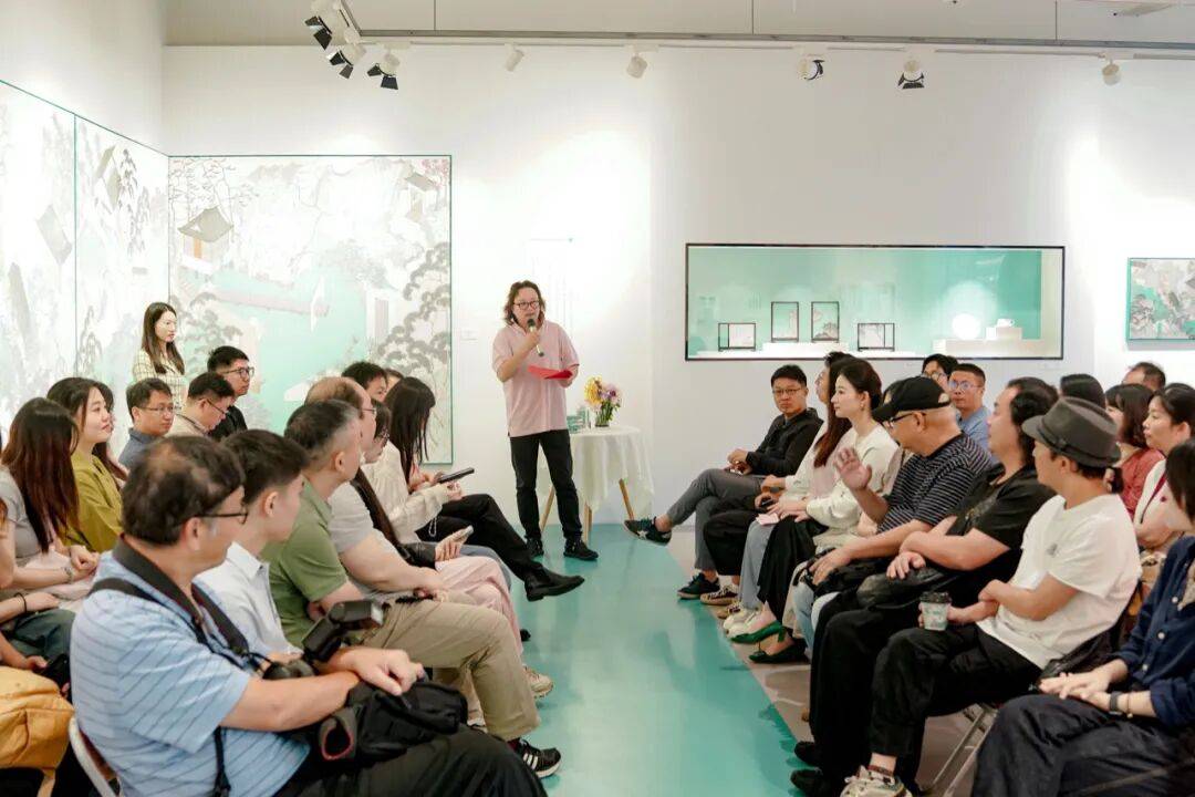 展览期间(9月30日),还举办了“后园林图景:姚永强”艺术展媒体见面会。主要分享了艺术家的创作心路历程以及40余款艺术文创产品的设计与生活融合实践。产品覆盖衣食住行,横跨缂丝、玉雕、陶瓷等传统非遗领域,也涵盖家纺、服装、丝绸制品及动画等现代工业及数字品类。
