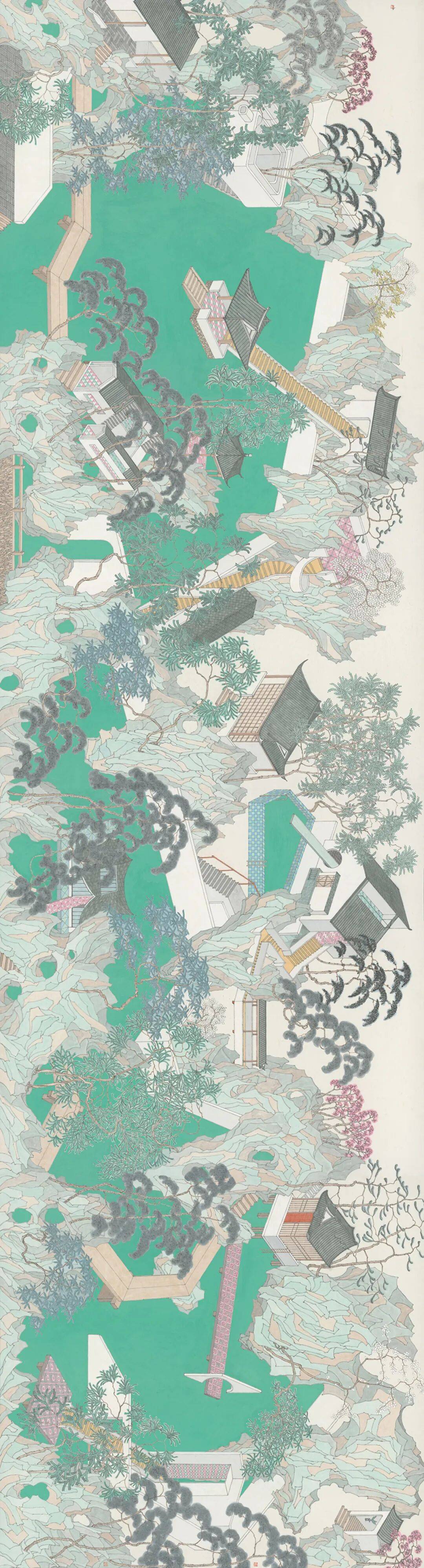 “他用了一种反向考古的方式,整合早年做吴地工艺美术研究积累的众多资源,使他绘画中虚构的现代产品在诸多设计师支持下从画中跳下来,画面中‘园林’的‘概念’局部、构建,变成一个个真实可感的手中之物。”苏州当代美术馆执行馆长王晓松说,这不是一个“画展”,而是从园林的视觉虚构到产品拆解、物化而进行信息传递的过程化展示。