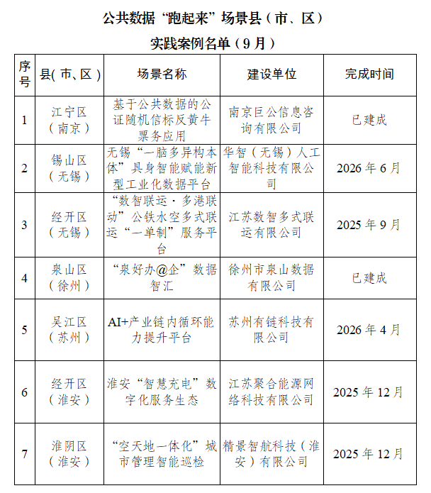 记者从江苏省数据局了解到,近日,根据各地报送场景所属领域等情况,该局邀请省大数据中心、省数据集团及东软集团、联合征信、江苏联通、江苏有线、南京中禹等有关单位的数据业务骨干组成专家组,对征集案例开展评议。专家组按照统一标准,对21个场景进行评议后,最终确定了2025年9月县(市、区)实践案例建议名单。