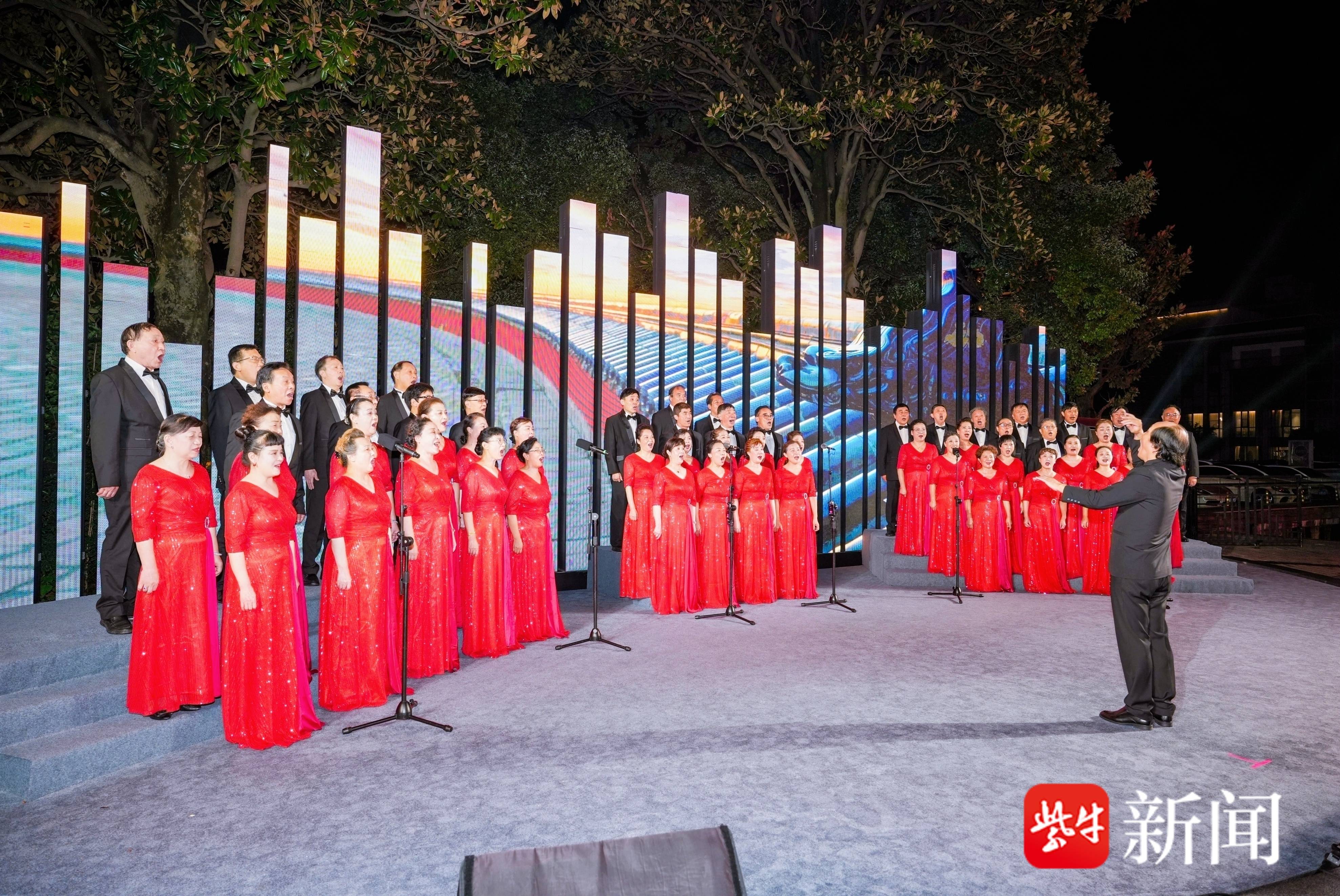 扬子晚报讯(记者 郭小川)9月30日晚,南通濠河之畔流光溢彩、人潮涌动。群英馆的舞台上,红色的旋律激情澎湃、欢乐的音符久久回荡。当晚,南通市“讴歌胜利 唱响和平”群众大合唱展演在此举行。来自全市15支合唱团的千名群众演员,用一首首红色经典之歌,向新中国成立76周年献上赤诚祝福。