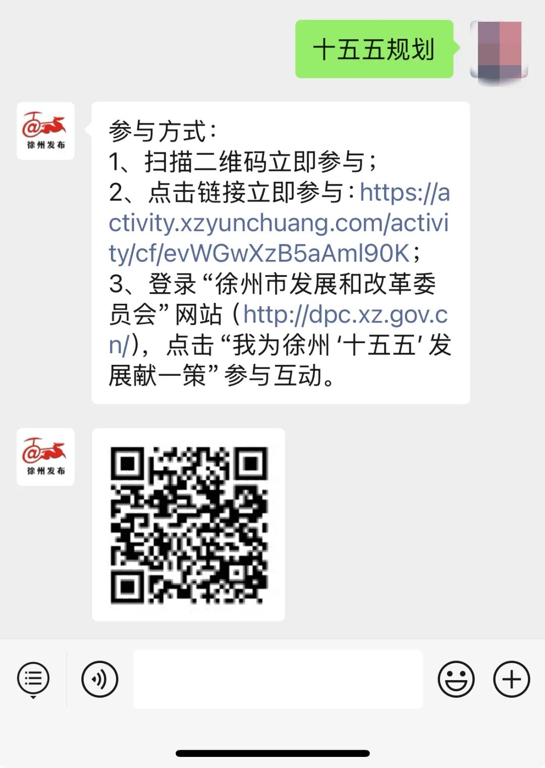 登录“徐州市发展和改革委员会”网站(http://dpc.xz.gov.cn/),点击“我为徐州‘十五五’发展献一策”链接参与互动。