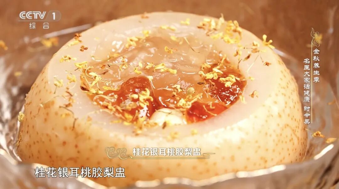 制作要点:将桃胶、银耳泡发备用;挖去梨核及部分梨肉,放入桃胶、银耳;将梨盅上锅蒸30分钟,出锅后撒上少许桂花,即可食用。
