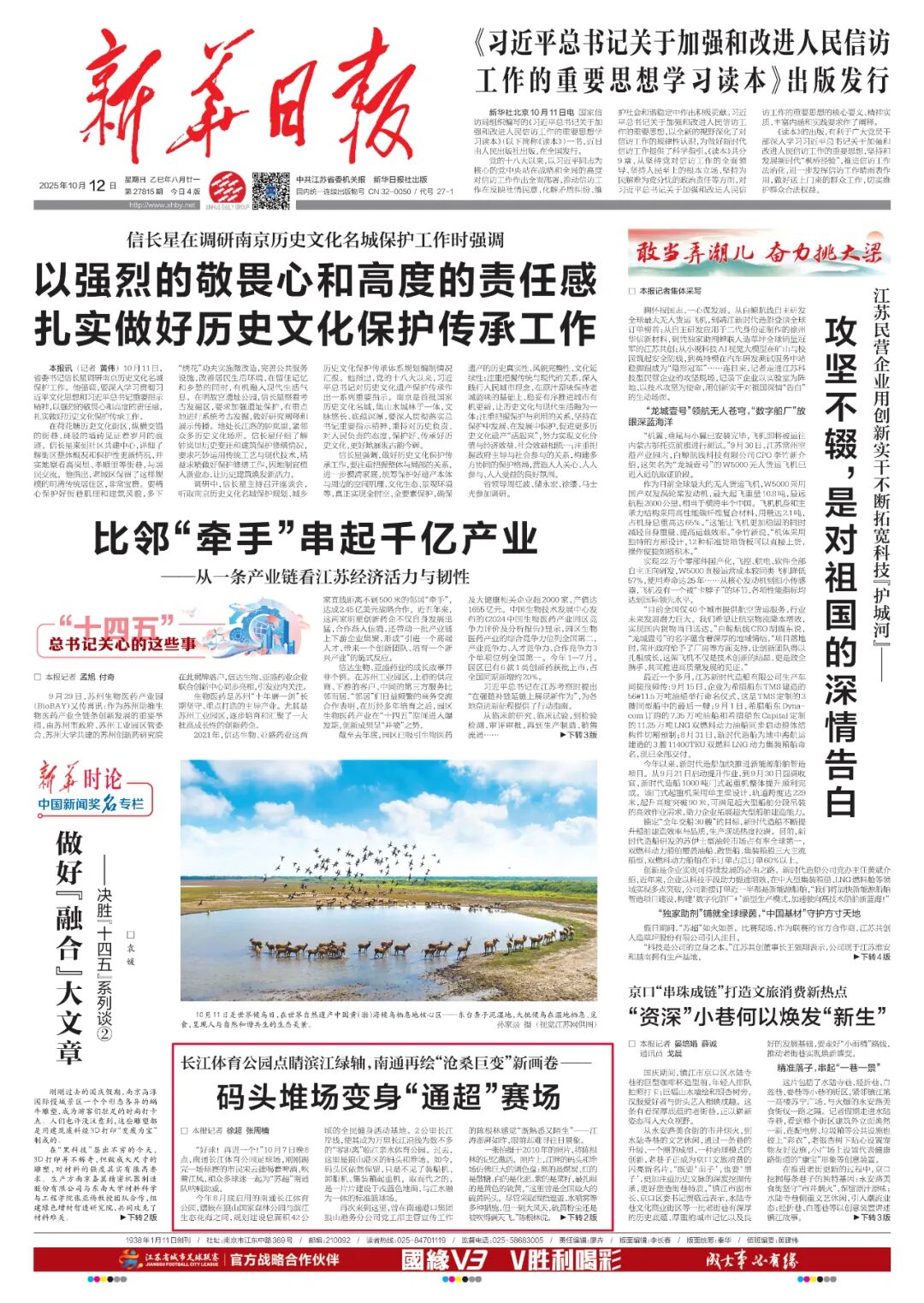 《新华日报》头版 | 长江体育公园“点睛”南通滨江绿轴
