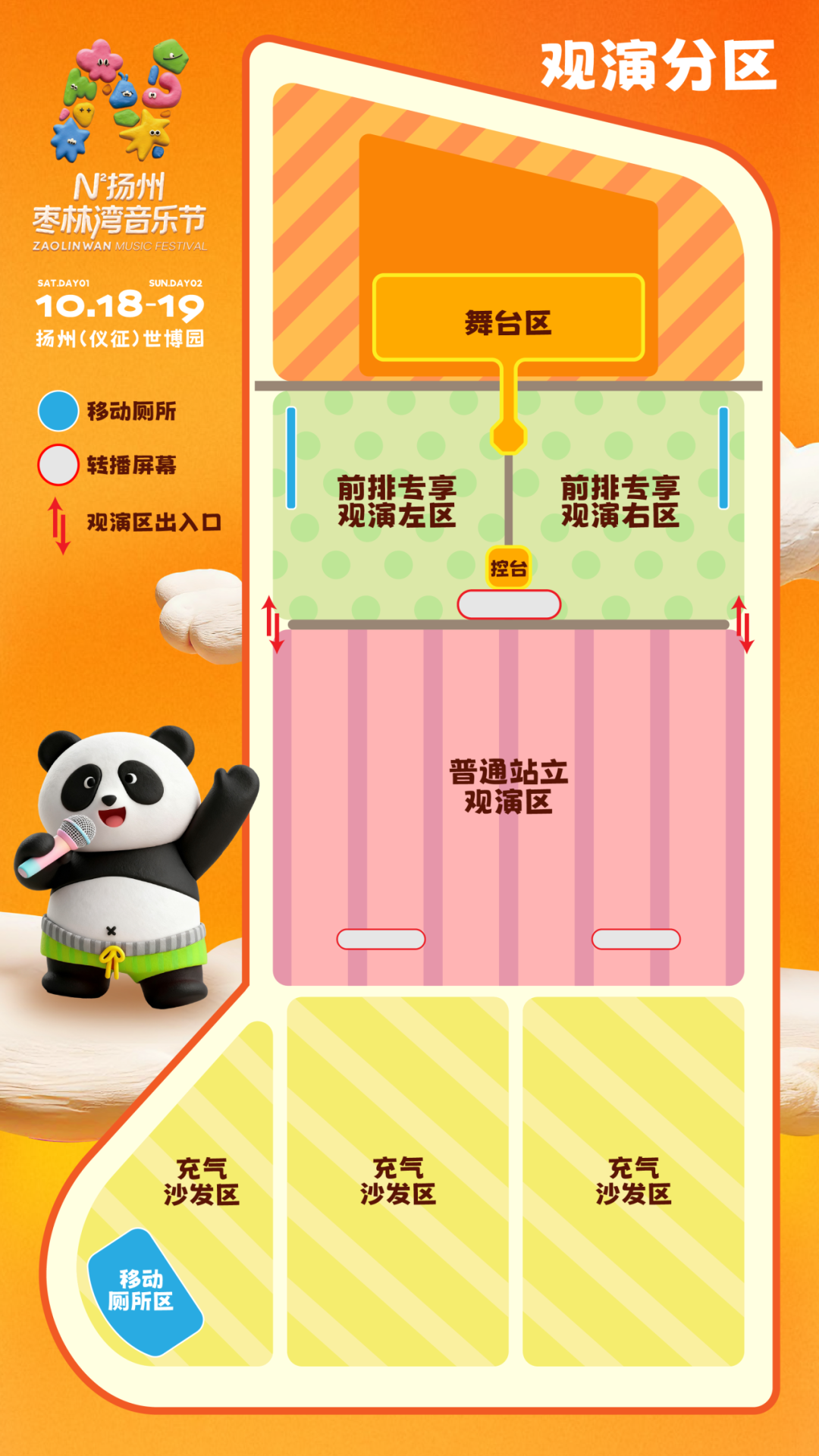 1、本次音乐节为单舞台演出,“前排观演区”分为「左 、右独立区域」,之间不互通;