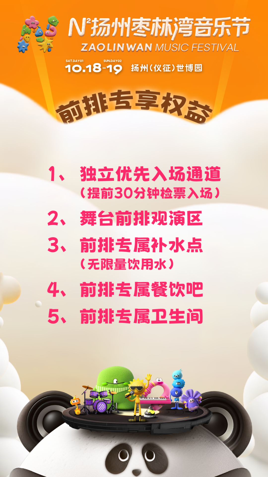 2、检票口设有“前排观演票”专属入场通道,可提前 60 分钟检票入场(具体检票开始时间将根据当日现场情况动态调整);